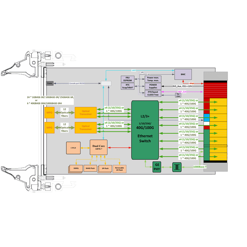 • Up to 38 * 1/10/40 GbE on VITA 46 & 66.5 connectors