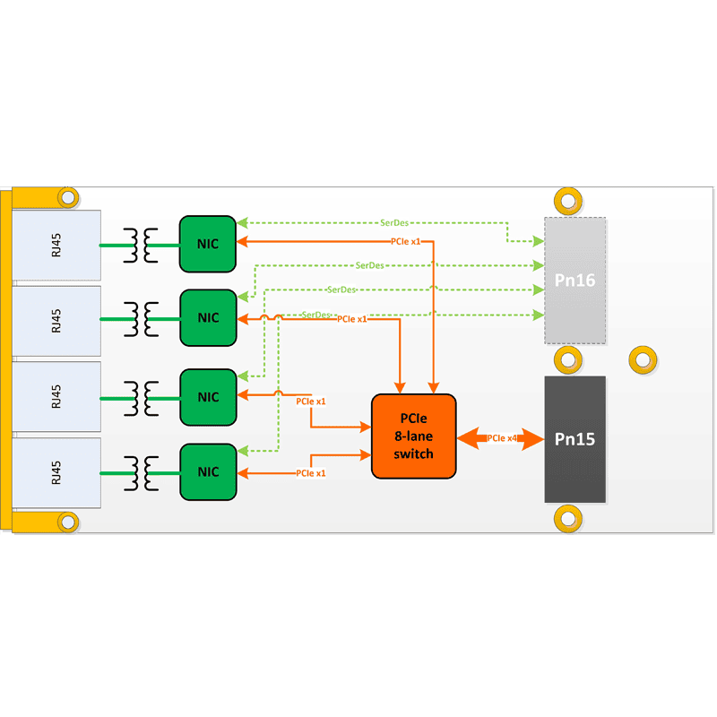 • Optional Configuration: 4* 1000 BASE-X SerDes (Pn6 connector)