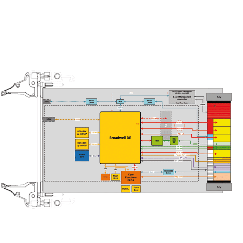 The IC-INT-VPX3e is a powerful OpenVPX 3U SBC based on the Broadwell-DE processor – 14nm High Performance Chip of Intel’s Low Power Spectrum.